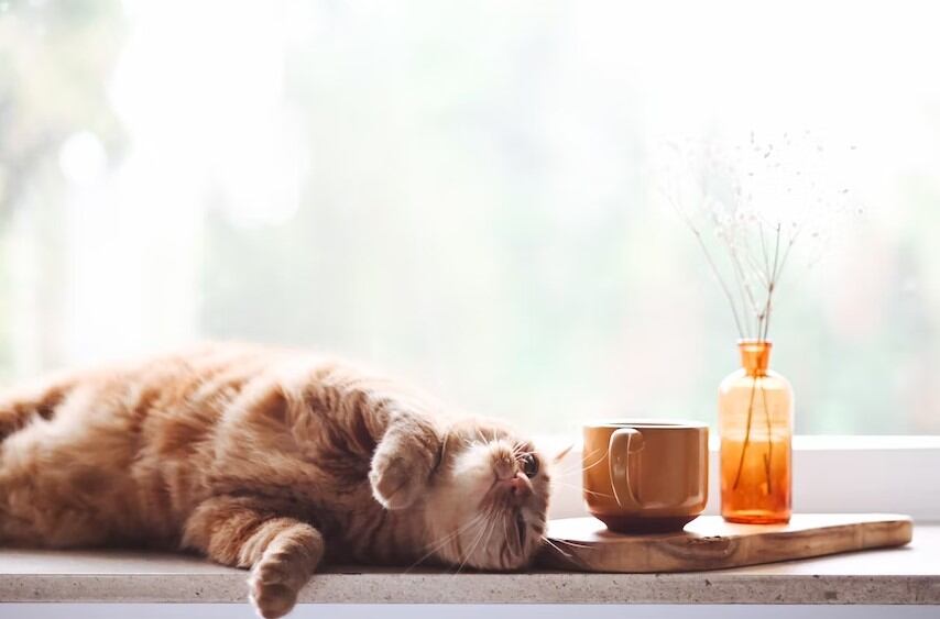 Un gato atigrado de color amarillo se encontraba al lado de uno d ellos platos donde había pavo servido y ya había dado algunos bocados. Lejos de asustarse y escapar, prefirió quedarse sobre la mesa y esperar a que su “mamá humana” lo retirase del lugar.