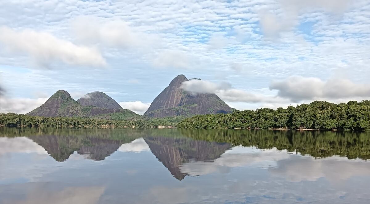 Cuando se va llegando se encuentran las nubes cobijando estos tres gigantes que van despertando con las primeras luces del día y sus picos van enseñando a la distancia para la primera fantasía colectiva. El impacto va aumentando a medida que se van desarropando y cuando su reflejo baja a buscar el baño del día en las aguas cristalinas. Son Mavicure, El Mono y Pajarito que están saludando.