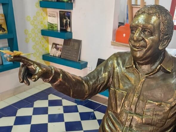 En la Casa Museo de Gabriel García Márquez hay arcones con hojas al viento, mecedoras como la de Rebeca Buendía. El ramo de la compañía bananera y los animalitos de caramelo que vendía Úrsula. Y por supuesto, el enorme castaño (centenario, quizás más viejo que el mismo coronel, abuelo del escritor y que el pueblo mismo, fundado en 1885), donde José Arcadio padre fue amarrado, enorme, macilento en su magnificencia, como centro de la edificación. Pero también está la estación del tren (hoy de carga) que tan significativa fue en la obra del Nóbel y la casa de su padre, el telegrafista, convertida en museo y centro cultural, donde destacan las obras de Melquin Merchán, joven artista cataqueño que se ha especializado en la imaginería del escritor.