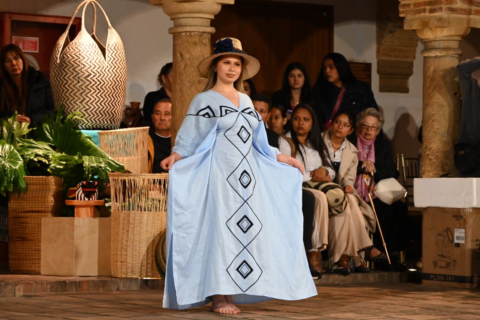 Con una puesta en escena llena de simbolismo, la pasarela “Colombia Artesanal” inauguró el evento “Bogotá es Moda” el jueves 16 de octubre en el histórico Claustro de Las Aguas. La apertura fue un homenaje a la etnia Wayuu, destacando uno de sus íconos más representativos: la manta tradicional, también conocida como Wayuushein en lengua wayuunaiki.