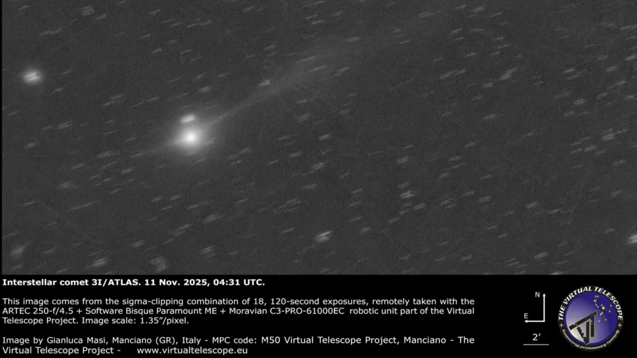 “Es algo que ningún cometa natural debería poder hacer”, comentaría un astrofísico teórico ante la falta de explicación. Las últimas imágenes captadas por el Telescopio Óptico Nórdico, en España, refuerzan el misterio: el objeto no muestra signos de fragmentación, sino que parece ser un cuerpo sólido y brillante, envolvido por una nube de gas alargada y una extraña “anti-cola” que apunta hacia el Sol.