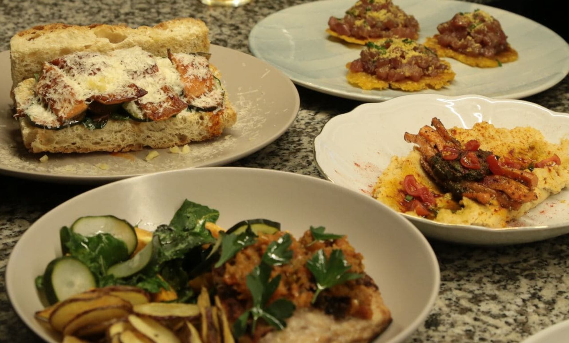 - Sándwich de focaccia de trucha: Jugoso y crujiente, con trucha, parmesano, pepinillos y salsa de pimentón. Ideal para quienes disfrutan comer con las manos sin sacrificar técnica ni sabor.