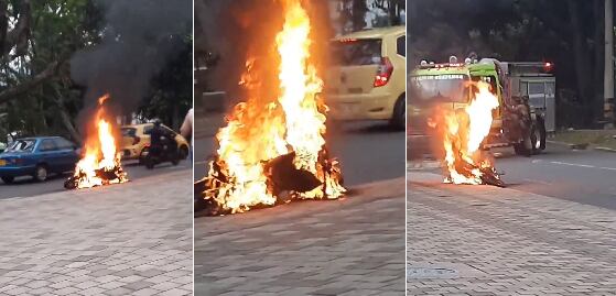 Al lugar debió llegar una unidad de Bomberos de Medellín para controlar la conflagración provocada con el incendio de la moto.