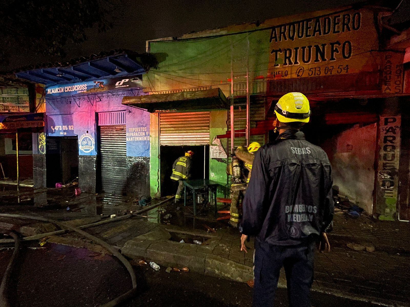 El teniente William Correa, Bomberos Medellín, “se presentó un incendio estructural de locales que funcionan como talleres de motos, bicicletas y restaurantes. Por el momento se desconocen las causas”.