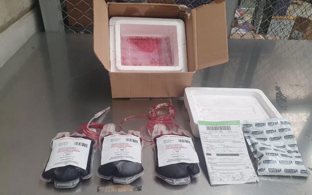 En una bolsa de cartón se encontraron tres bolsas plásticas intravenosas, con un líquido rojo que en sus rótulos hacía referencia a muestras de sangre. “Esta sustancia fue sometida a la prueba de identificación preliminar PIPH, que arrojó positivo para clorhidrato de cocaína, con un peso neto de 1.629 gramos”, señaló la Policía Antinarcóticos de Medellín.