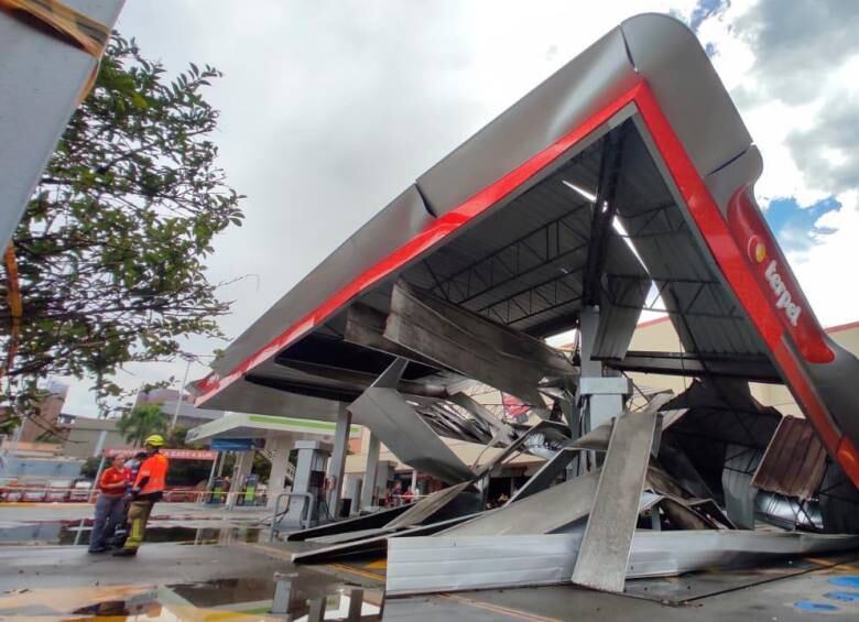 Se cayó el techo de estación de servicio en Guayabal, en aguacero en Medellín