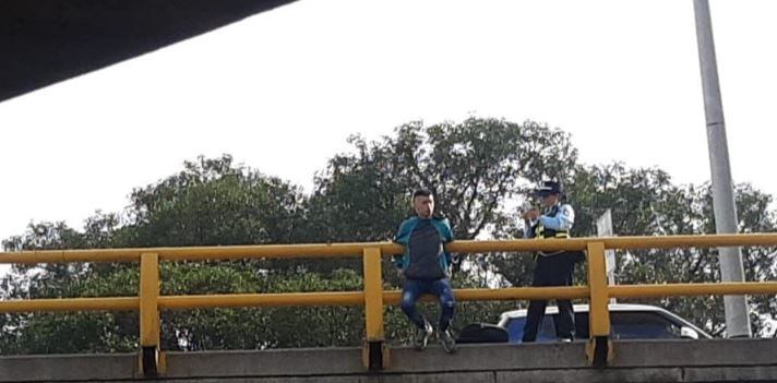 Este miércoles, 28 de junio, en plena hora pico en Medellín, una agente de tránsito logró evitar que un hombre saltara de un puente. La mujer logró acercarse y convencerlo y bajarlo de las barandas en donde estaba a punto de caer.