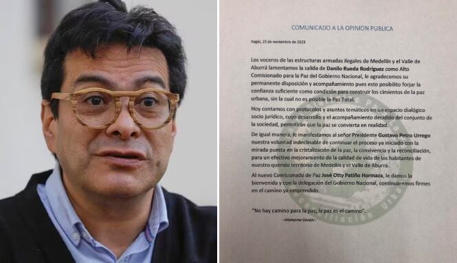 Este jueves, 23 de noviembre, se conoció un comunicado emitido por los voceros de las “estructuras armadas ilegales en Medellín y el Valle de Abrurrá”, a través del cual lamentan la salida del Alto Comisionado para la Paz, Danilo Rueda Rodríguez.