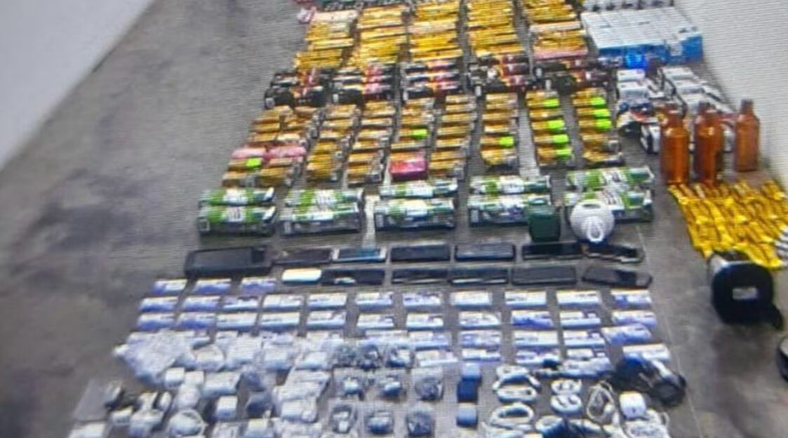 Entre el material hallado se cuentan 112 paquetes que, al parecer, contenían 38.400 gramos de marihuana, 3.230 gramos de cocaína, 1 módem de internet, 600 granos de tussi rosado, 20 unidades de popper, 65 litros de ron, 10 litros de aguardiente, 24 cervezas, 5.000 gramos de levadura, 11 celulares, 41 tarjetas SIM, 50 cargadores para celular, 2 bafles, 1 gramera digital, 2.600 cigarrillos y hasta un televisor portátil.
