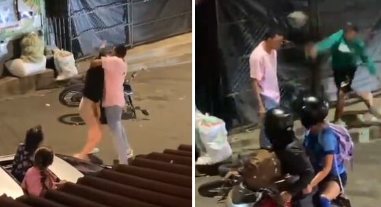 Antes varios jóvenes intercambiaron golpes y la mujer siempre en la mitad, también intentado golpear al sujeto.