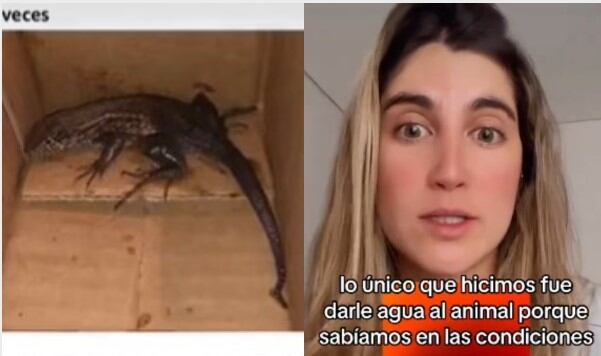 En un video en Tik tok, esta usuaria denunció que pidió el electrodoméstico Air fryer Ninja, pero que al sacarlo de la bolsa una empleada saltó del susto porque venía con un reptil. La caja venía sellada y al interior de una bolsa blanca estaba el animal. Las mujeres en la casa se asustaron y tuvieron que pedir ayuda a la persona que trabaja en las áreas generales para que pusiera el lagarto a salvo en un balde. “Lo primero que hicimos después de ese largo viaje fue darle agua”, dijo la mujer identificada como Sofía Serrano en redes.
