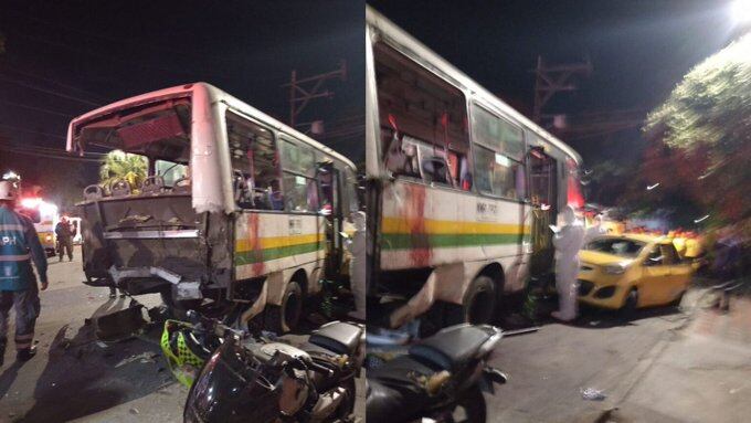 El accidente se produjo el domingo en la calle 69 con carrera 47, cuando un bus de transporte especial, que al parecer sufrió una falla en los frenos, se estrelló contra una motocicleta, dos taxis y un bus alimentador del metro. Las imágenes del lugar del siniestro muestran la magnitud del impacto, con un taxi completamente destrozado y el bus sin su vidrio panorámico.