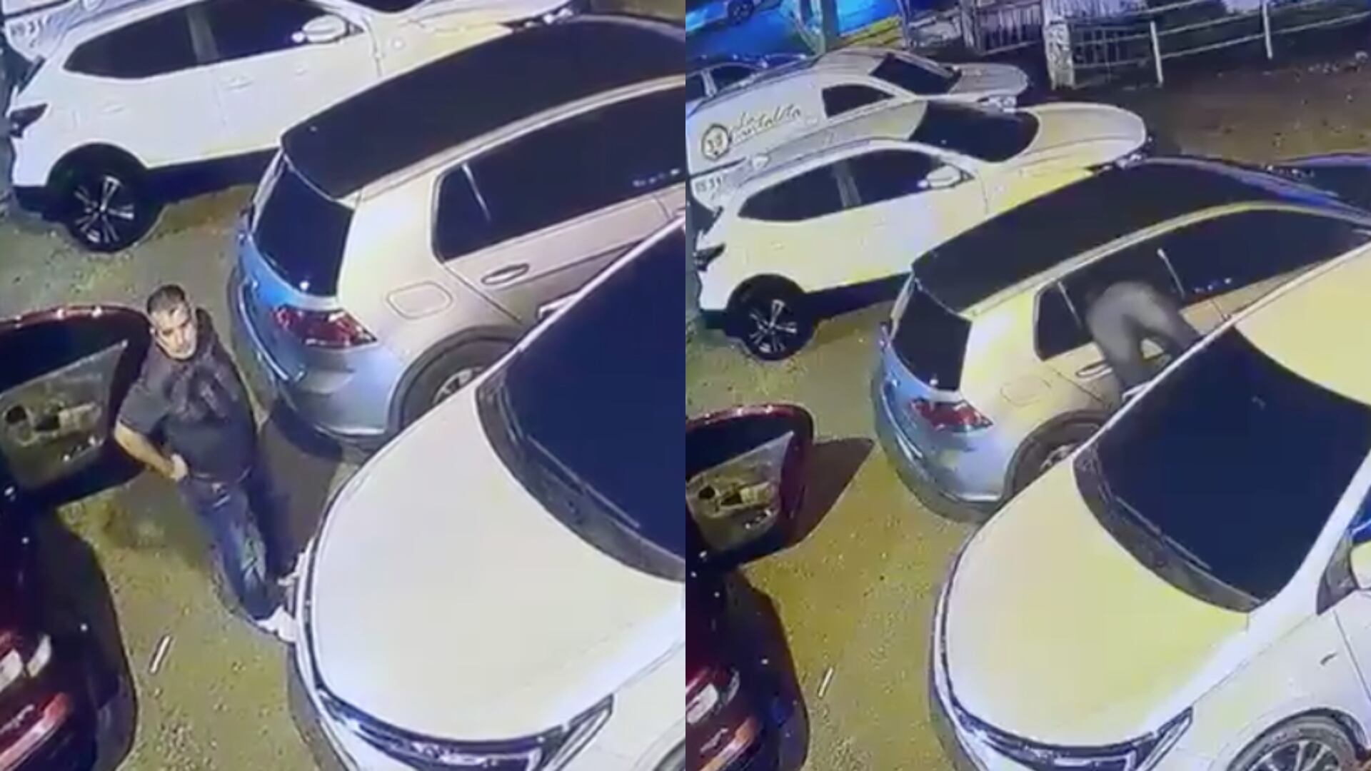 Una vez con la ventana rota, revisa que nadie esté cerca, se abalanza sobre el vehículo y empieza a desocupar la camioneta, sacando todos los objetos que estaban en la parte trasera del vehículo. El hombre rápidamente sube dentro del vehículo varias maletas y demás objetos que estaban dentro del vehículo con toda la calma del mundo, además, con toda tranquilidad revisa que no se le quede nada del botín.