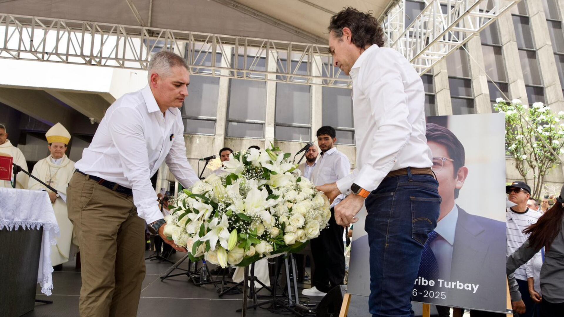 Este martes, 12 de agosto, el alcalde de Medellín, Federico Gutiérrez, y el gobernador de Antioquia, Andrés Julián Rendón, realizaron una misa póstuma en memoria de Miguel Uribe Turbay en el centro administrativo La Alpujarra. Cabe recordar que el senador y precandidato presidencial murió después de dos meses de estar luchando por su vida, luego de haber sido víctima de un atentado sicarial, a manos de un menor de 14 años en Bogotá.