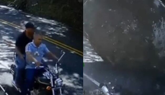 Segundos del terror: así huyó un motociclista antes de que una roca aplastara su vehículo en Dabeiba
