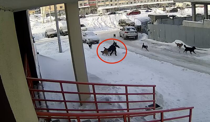 Un video captado por cámaras de vigilancia en la  ciudad de Ufá, Rusia, mostraron el momento en que una jauría de perros callejeros estuvieron a punto de atacar a un niño que caminaba por la calle.