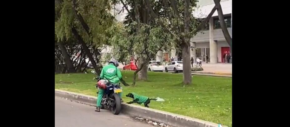 Por tanto, este dúo dinámico trabaja duro, ambos en su función, por ello vemos que el canino, vestido de verde, la igual que el uniforme de su cuidador, rápidamente corre hacia la moto de su humano a quien protege y acompaña en sus misiones diarias.