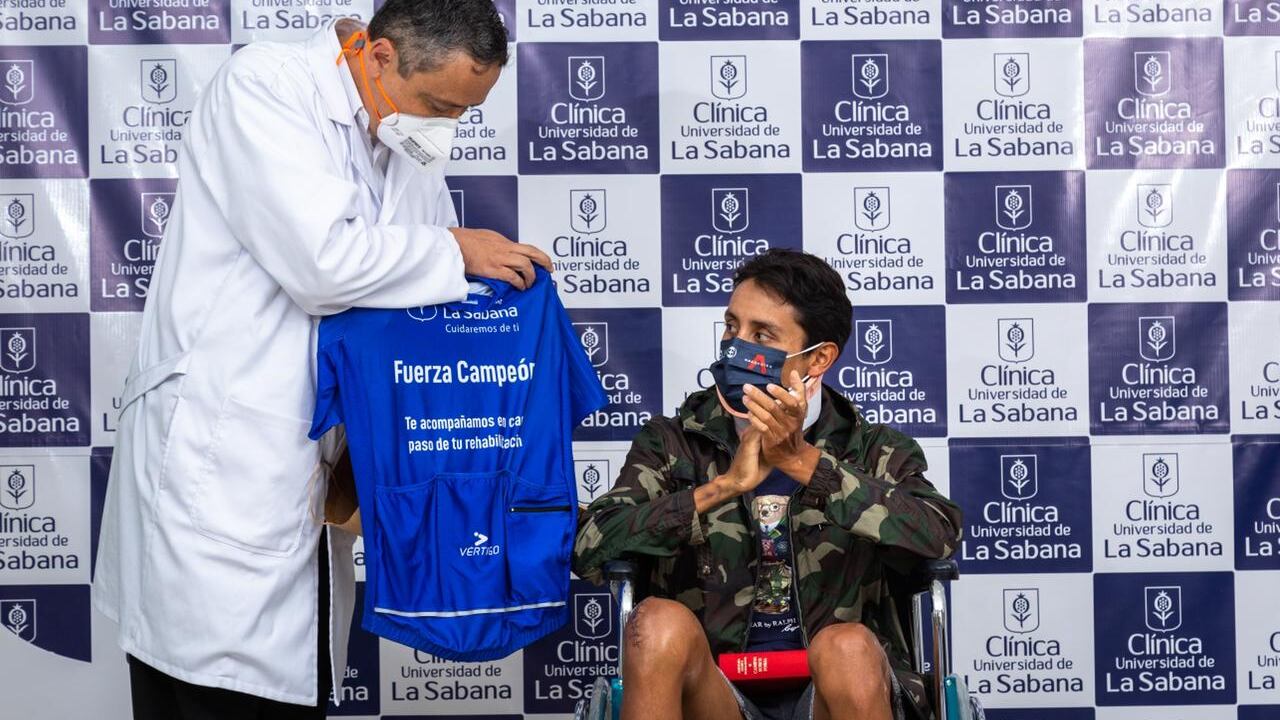 El corredor chocó hace dos semanas a alta velocidad contra un autobús en la carretera que va de Bogotá a Tunja, a la altura del municipio de Gachancipá, cuando el vehículo se había detenido, impacto que le causó fracturas en el fémur y la rodilla derecha, en vértebras y en once costillas, entre otras lesiones.