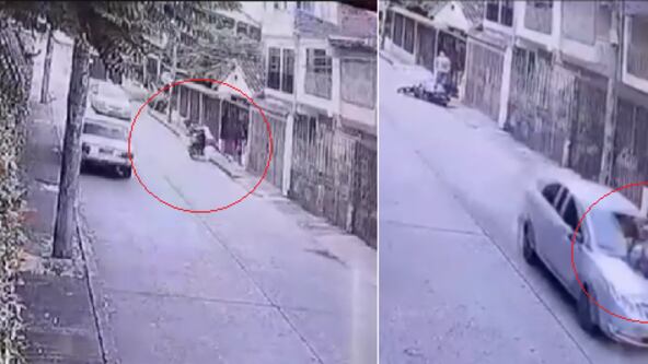 En un video captado por una cámara de seguridad quedó el instante en el que un vehículo atropella a un presunto ladrón, cuando la víctima para defenderse lo empujó hacia la calle.