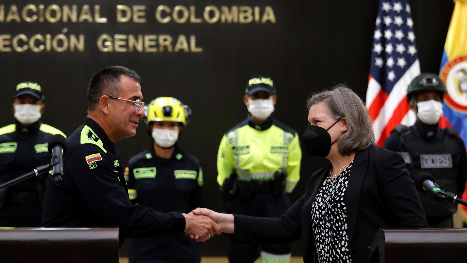 Como parte de su viaje a Colombia, Nuland se reunió con el director general de la Policía Nacional, el general Jorge Luis Vargas Valencia, junto a quien anunció en una rueda de prensa la donación que es muestra del “respaldo de la Casa Blanca al proceso de modernización” de las fuerzas de seguridad colombianas.