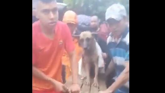 En las imágenes se ve al canino como en estado shock y exhausto después de la dura jornada que padeció.