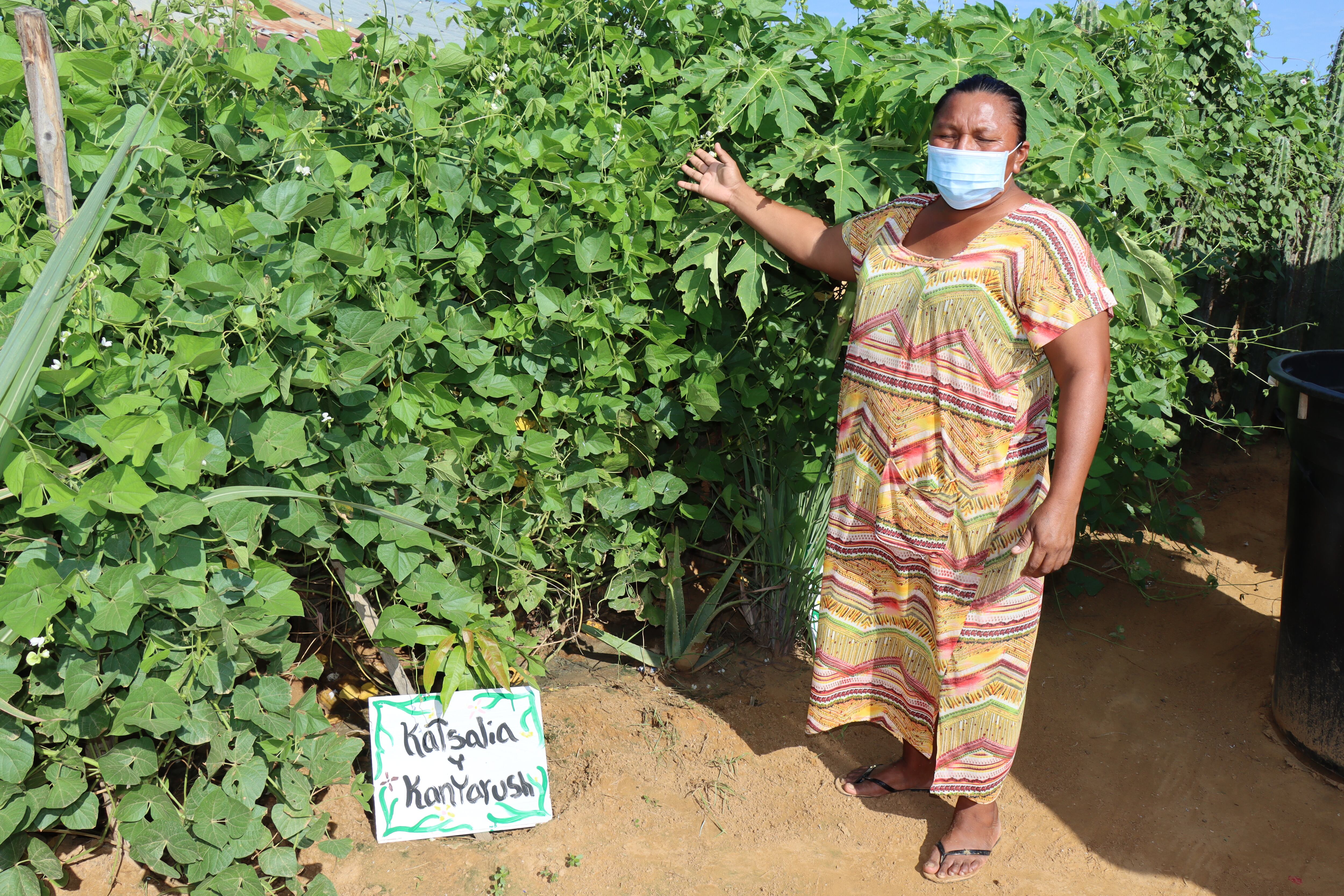 “Ahora vendemos lo cosechado hasta a domicilio, con un costo menor, porque somos de aquí y tenemos que compartir y así enseñarles a la comunidad a que aprendan lo que estamos haciendo con la siembra, que en Venezuela es muy distinta a la siembra que se hace aquí”, cuenta Nurys González, binacional residente en el asentamiento de La Esperanza en Uribia.