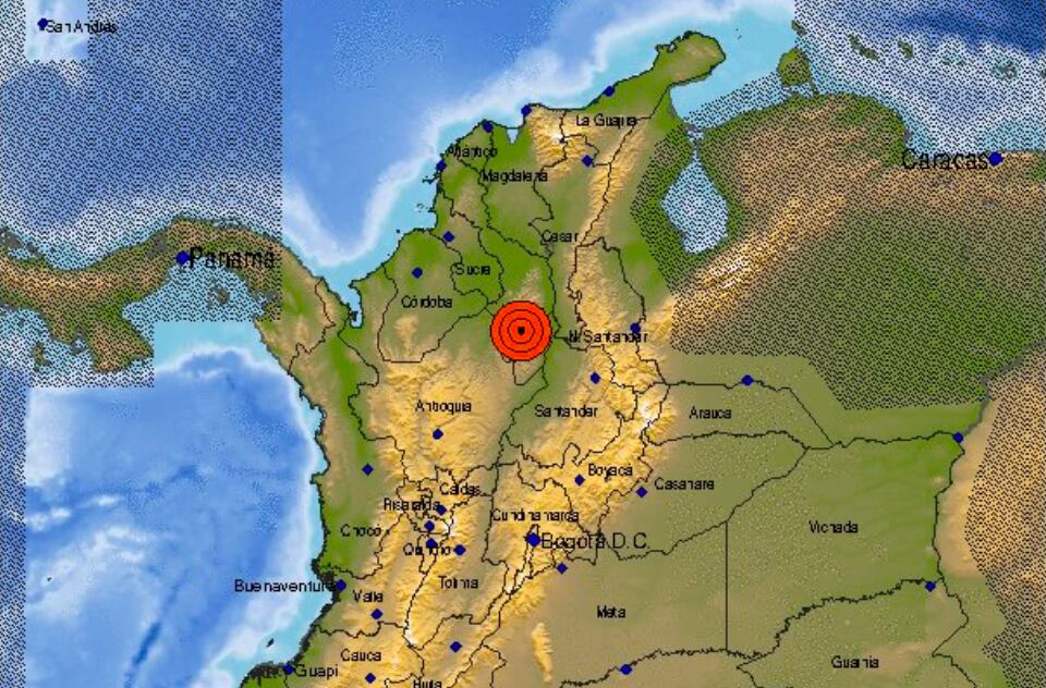 Según informó la entidad, el epicentro se produjo exactamente en el municipio de Santa Rosa del Sur en el departamento de Bolívar.