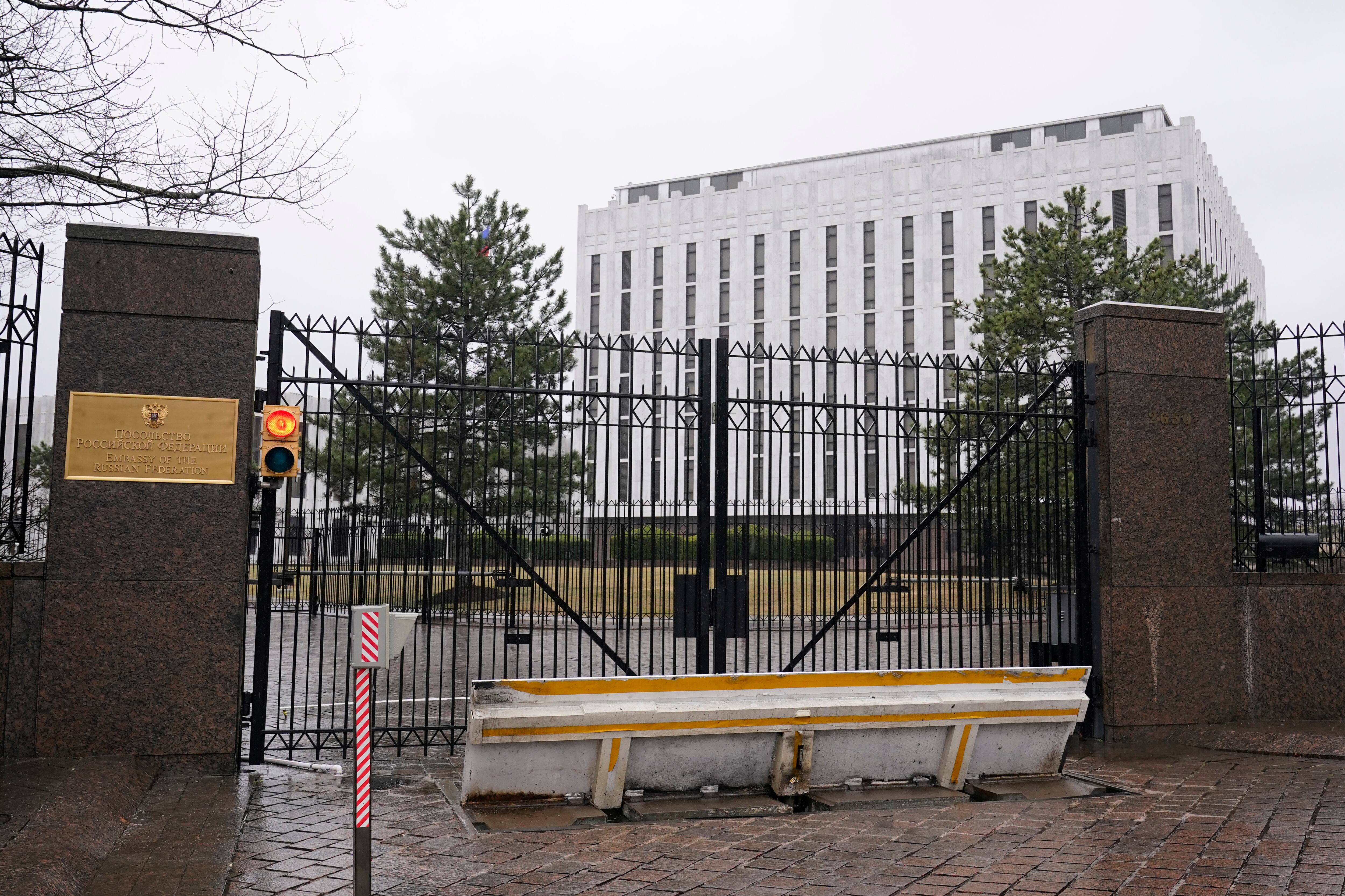 Vista de la embajada de Rusia en Washington Vista de la embajada de Rusia en Washington, el jueves 24 de febrero de 2022. (AP Foto/Susan Walsh) (Susan Walsh/AP)