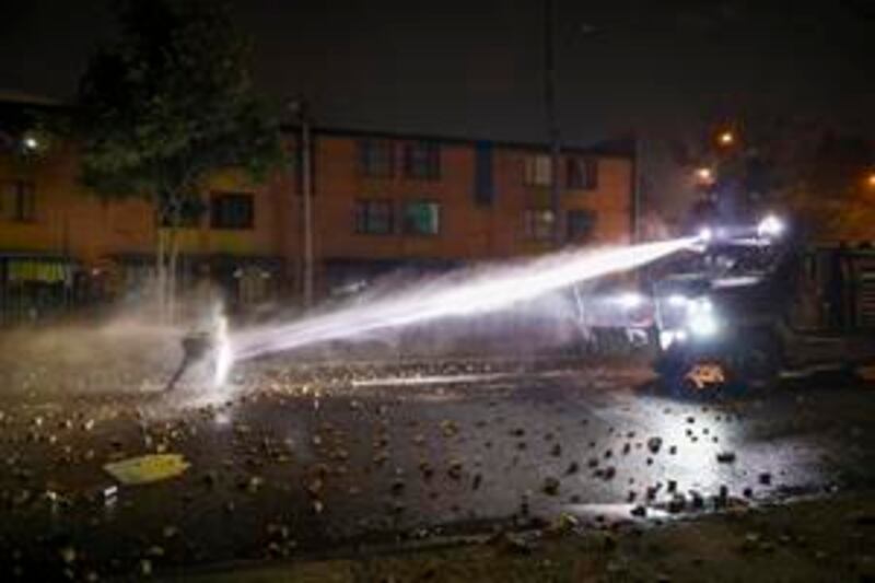 La fotografía se tomó en el marco del paro nacional en Colombia, en la madrugada del sábado 22 de mayo de 2021, durante los enfrentamientos nocturnos en el Portal las Américas, en el suroccidente de Bogotá.