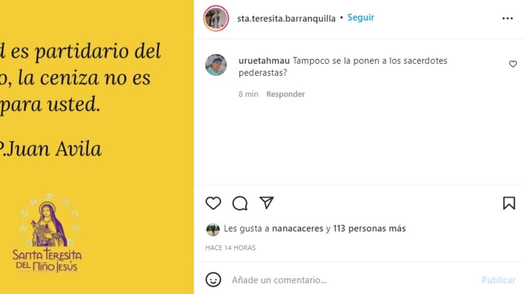 La parroquia de Santa Teresita del Niño Jesús está envuelta en una controversia en redes, por un contundente mensaje que publicó en su cuenta de Instagram, en Barranquilla.