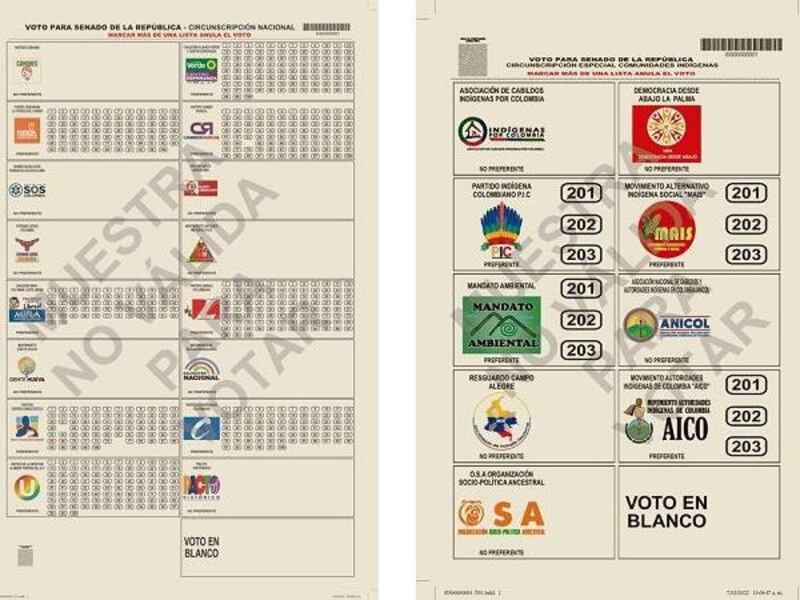 Cabe mencionar que en el caso de las listas cerradas, como las del Pacto Histórico y Comunes, solo bastará con que marque la equis “X” encima del logo del partido.