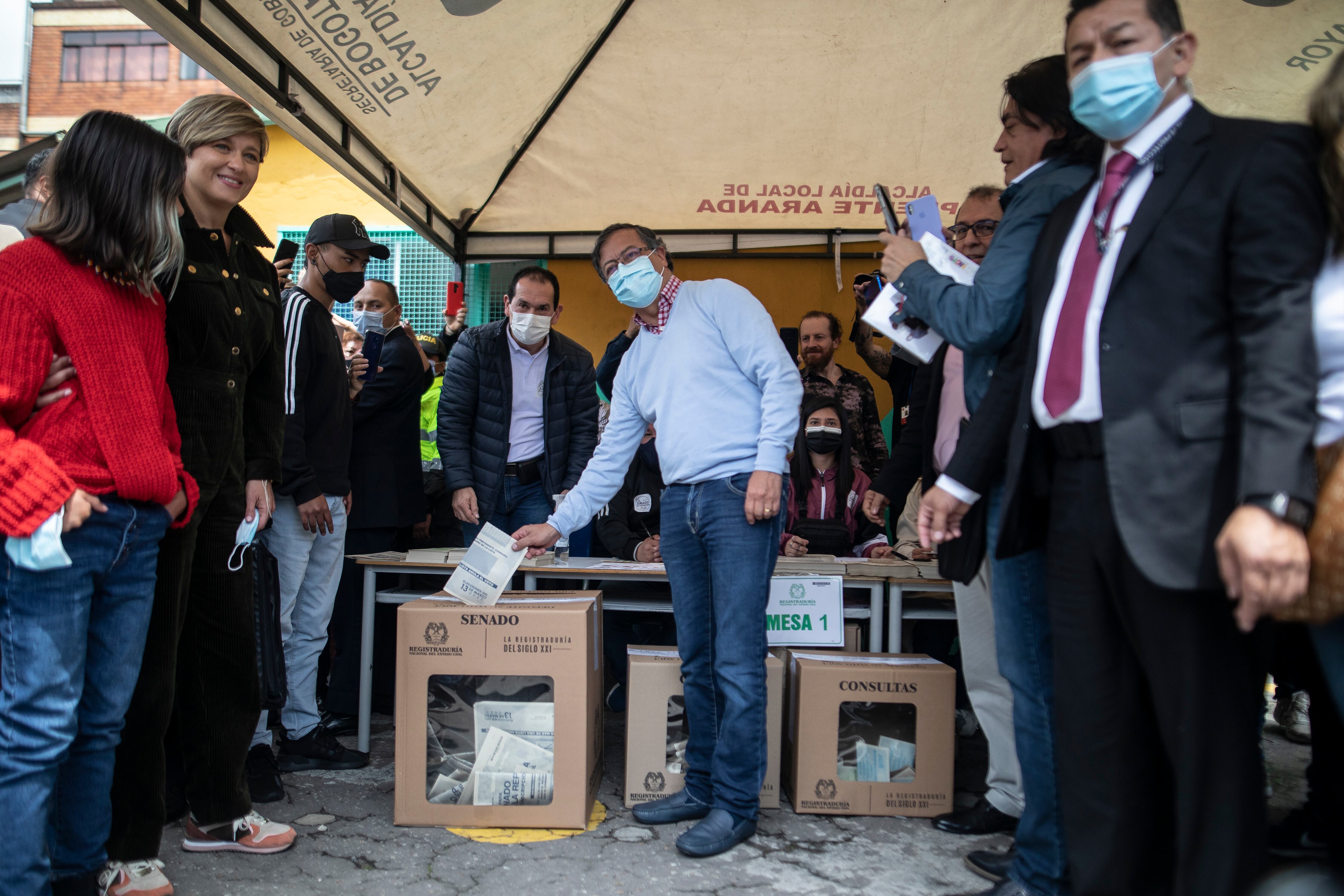 El candidato a la presidencia Gustavo Petro antes de entrar al debate electoral previo anunció que pedirá una investigación a la Registraduría por el conteo de votos por el Pacto Histórico.
