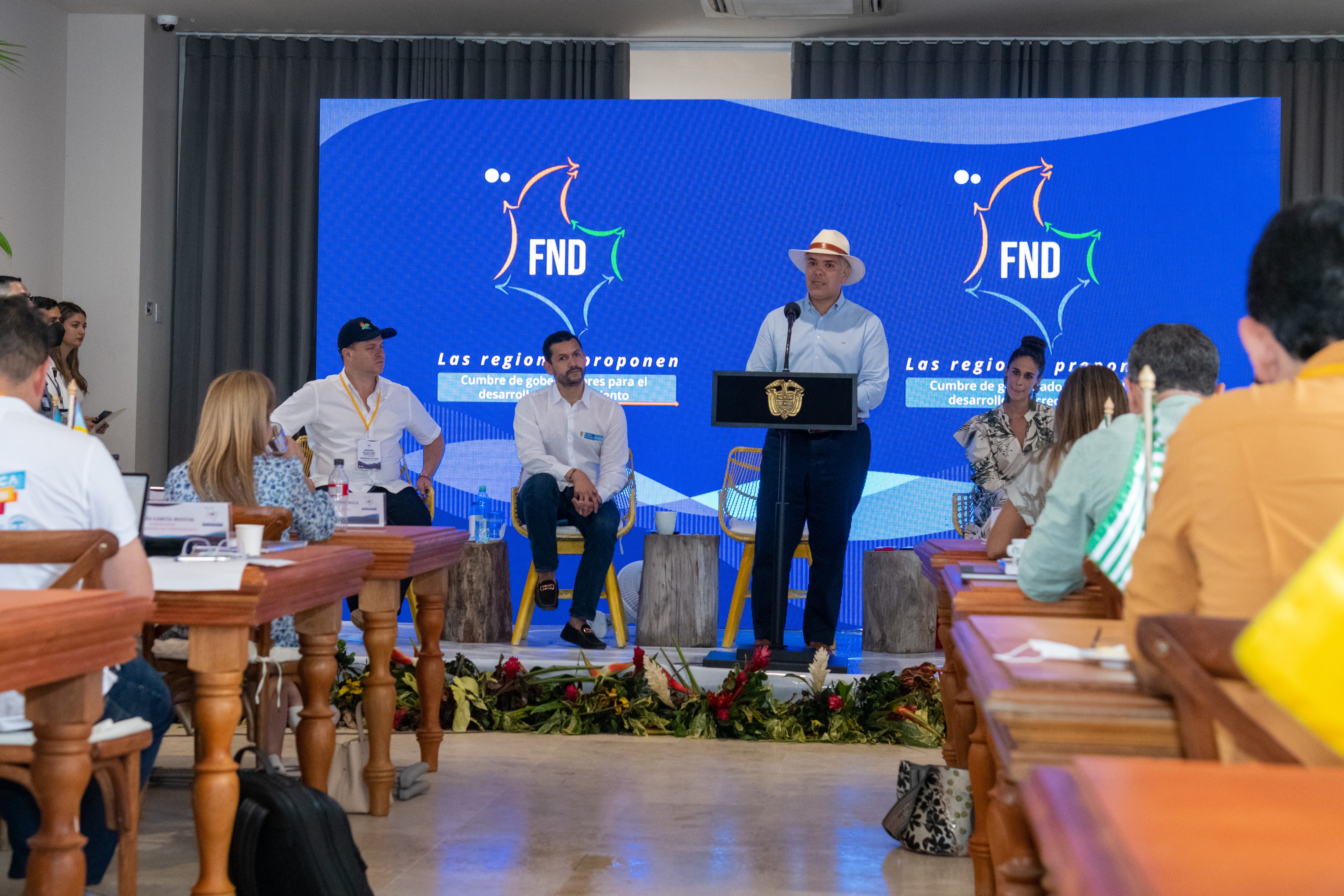 En el evento, convocado por la Federación Nacional de Departamentos, el jefe de Estado hizo un recuento del trabajo hecho por las regiones del país y se refirió puntualmente a obras de infraestructura y programas sociales ejecutados en su administración, y también presentó reflexiones sobre la democracia.