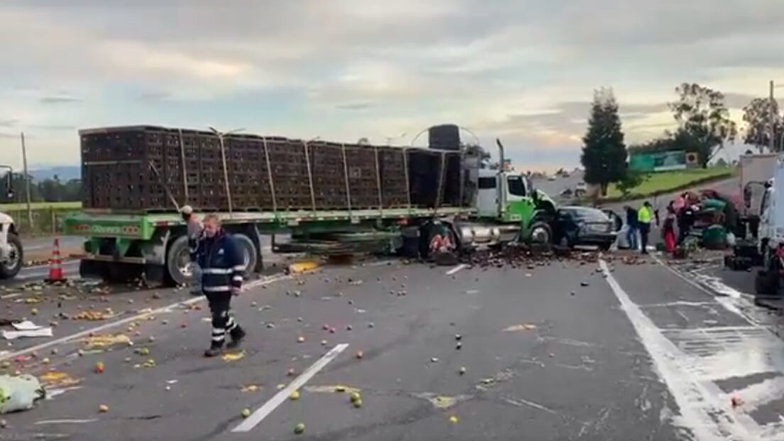 “Tenemos una primera hipótesis que uno de los vehículos frena bruscamente, se está determinando si por cambios de carril esto genera que el camión choque contra este. Afortunadamente no tenemos lesionados”, explicó el comandante de Policía de Cundinamarca, coronel Diego Mora.