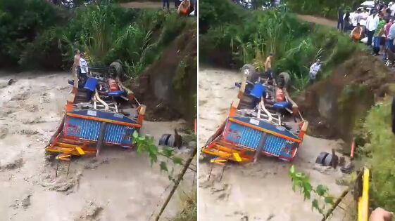 El hecho se registró en la vereda Los Andes, cuando el bus escalera circulaba por una carretera destapada y de un momento a otro cayó al río Barroso con todos los pasajeros abordo.