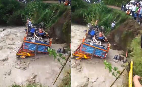 El hecho se registró en la vereda Los Andes, cuando el bus escalera circulaba por una carretera destapada y de un momento a otro cayó al río Barroso con todos los pasajeros abordo.