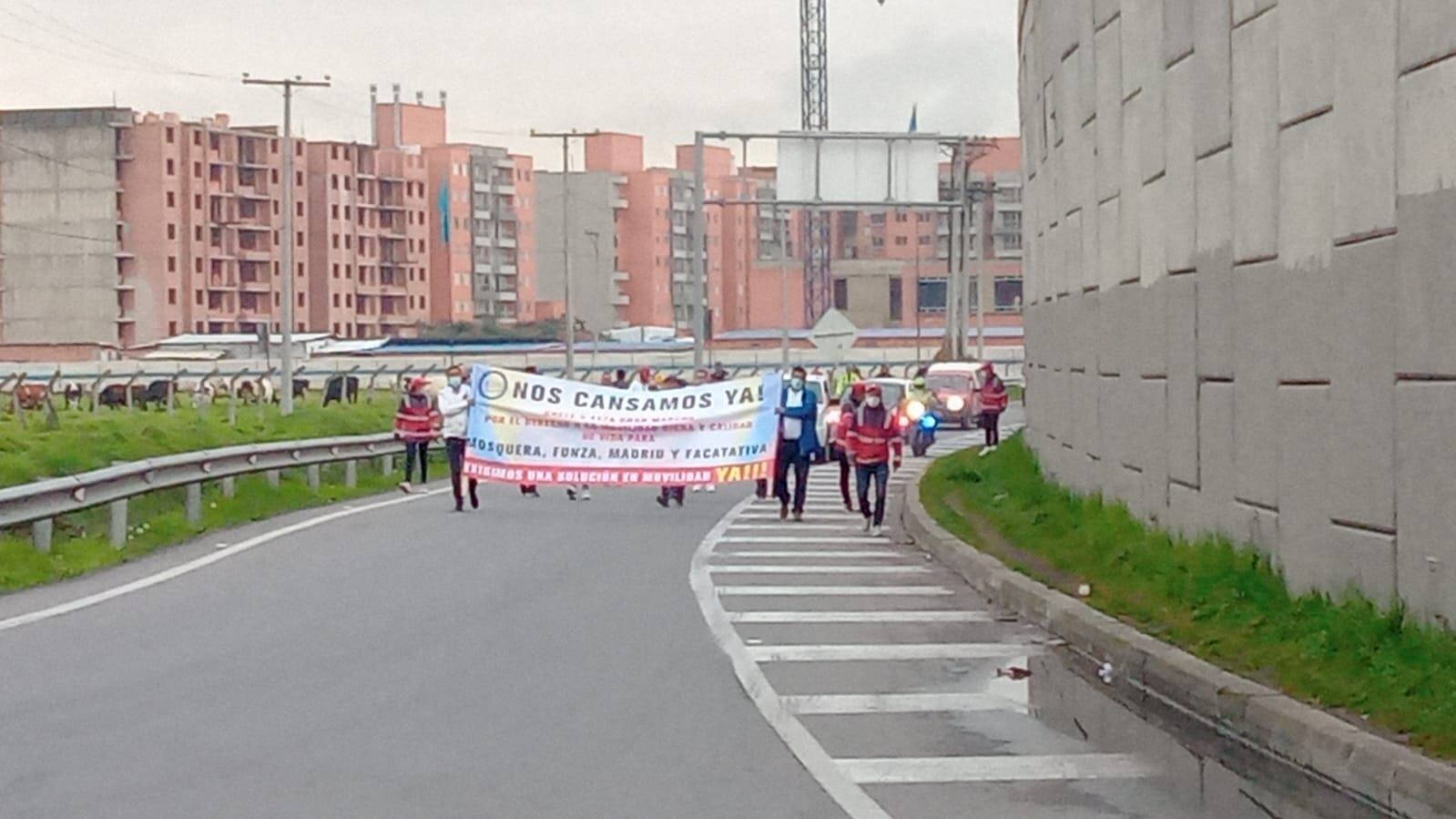 En la mañana de este lunes ciudadanos de los municipios de Mosquera, Madrid, Funza y Facatativá se manifestaron por el caos en la movilidad que diariamente se presenta entrando a la ciudad de Bogotá. Conductores de los buses intermunicipales aseguran que aproximadamente son cuatro a cinco horas que puede durar el trancón para llegar a este destino. “Falta policía. A veces uno los ve sentados mirando el celular. Y deberían agilizar. Por ejemplo, la parte más delicada es la del Recodo, ahí empieza el trancón”.