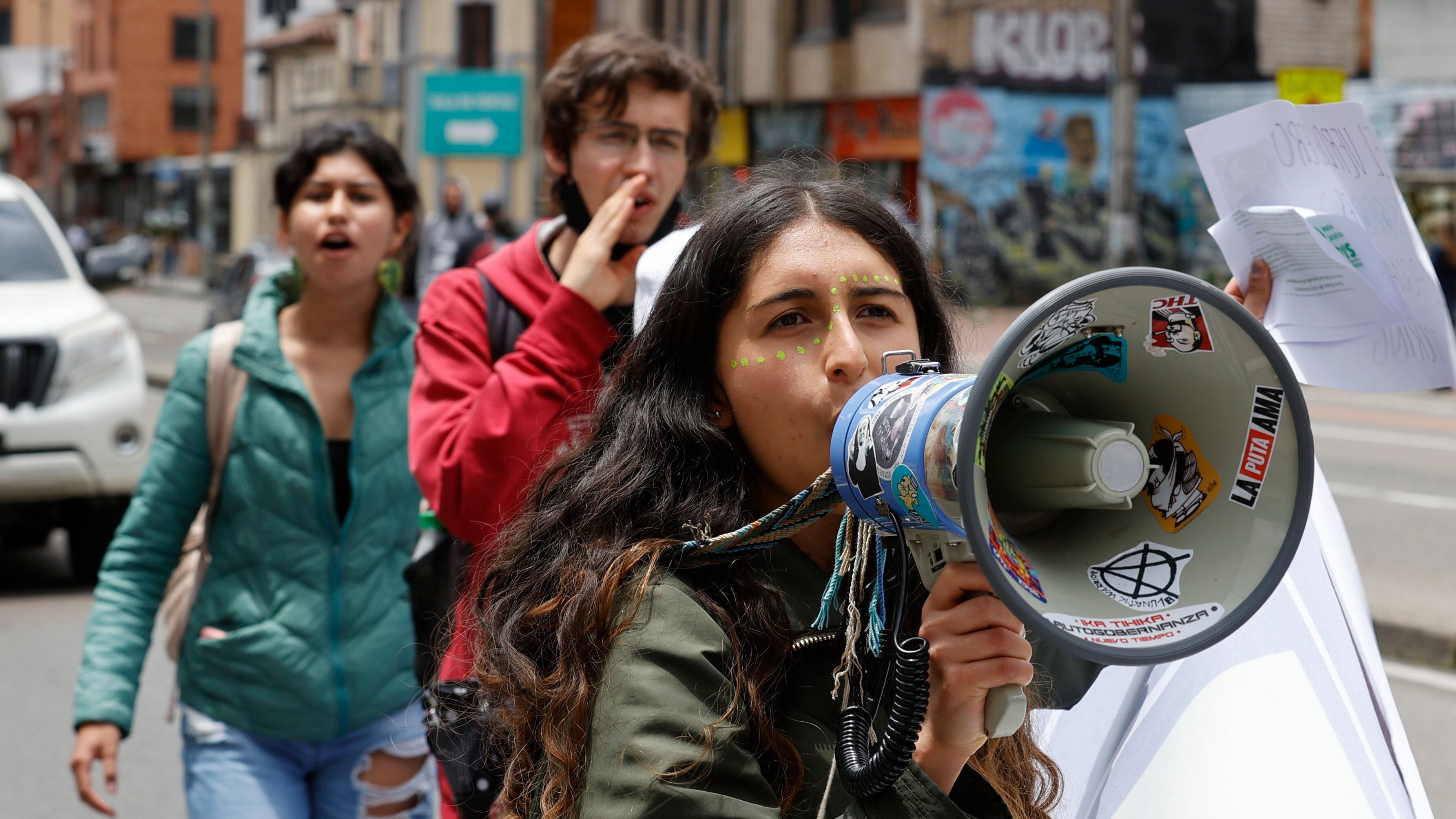 Con pancartas que decían “No al Fracking”, “Defendamos la tierra, el agua y la vida. ¡No! al fracking en Colombia”, protestaron por la carrera séptima en contra de esta técnica.