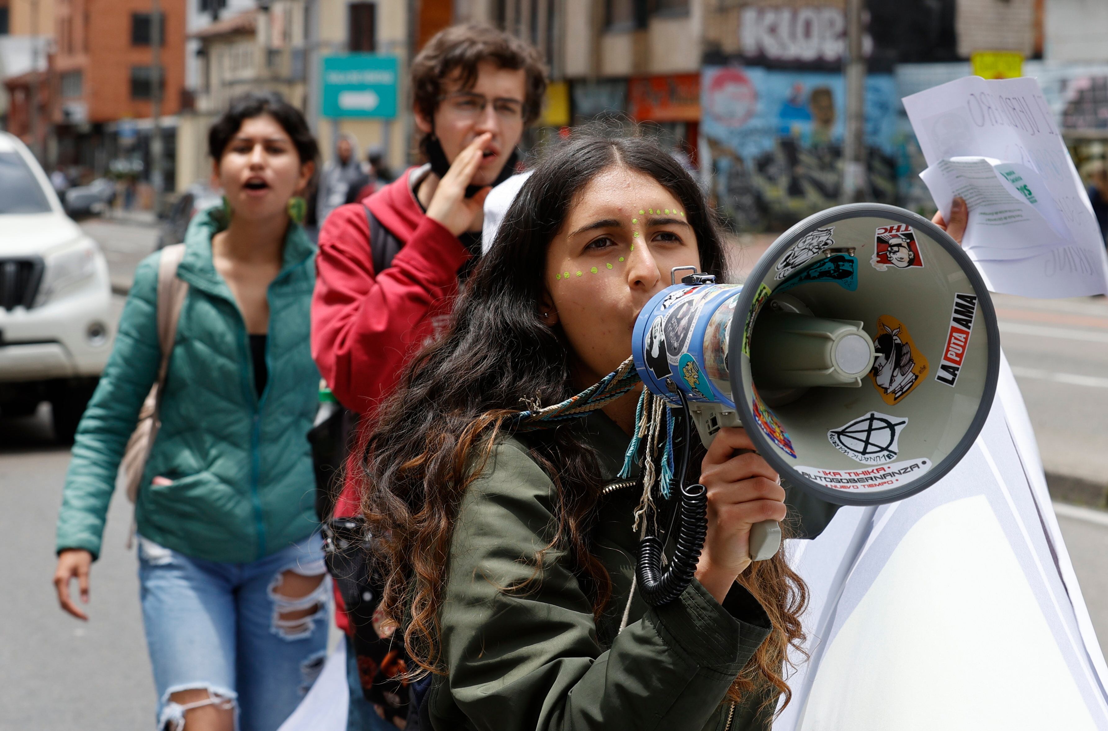 Con pancartas que decían “No al Fracking”, “Defendamos la tierra, el agua y la vida. ¡No! al fracking en Colombia”, protestaron por la carrera séptima en contra de esta técnica.