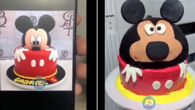 El cliente fue la que publicó en sus redes sociales el resultado de la torta de Mickey Mouse que había mandado a hacer, ya que fue muy diferente al modelo que había enviado como referencia para que la pastelera le hiciera.