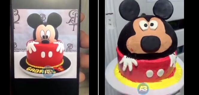 El cliente fue la que publicó en sus redes sociales el resultado de la torta de Mickey Mouse que había mandado a hacer, ya que fue muy diferente al modelo que había enviado como referencia para que la pastelera le hiciera.