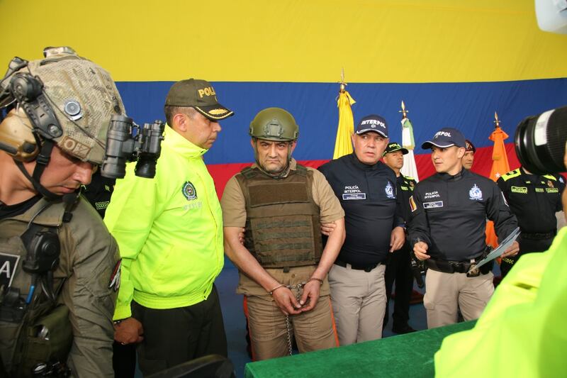 Fue así como alias Otoniel, detenido en octubre del año pasado, fue trasladado el miércoles 4 de mayo desde una sede de la Policía en Bogotá a la base militar de Catam, anexa al aeropuerto internacional El Dorado, donde abordó un avión en el que fue entregado a autoridades de EE.UU., según imágenes divulgadas por las autoridades colombianas en las que el capo aparece cabizbajo y esposado.