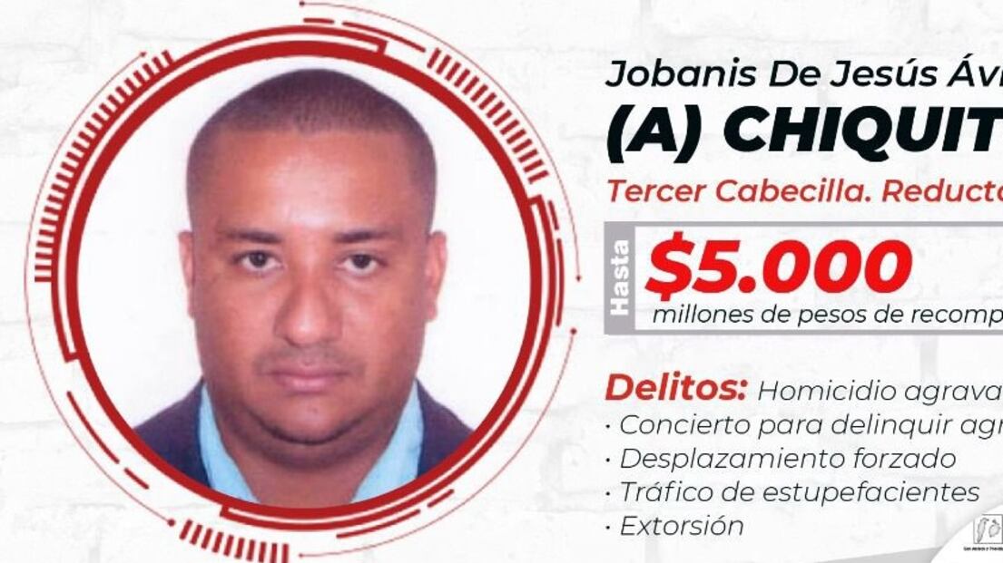Cabe recordar que el Gobierno ofrece una recompensa de hasta 5.000 millones de pesos, por alias ‘Chiquito malo’ quien está identificado como Jobanis de Jesús Ávila Villadiego y tiene 42 años de edad.