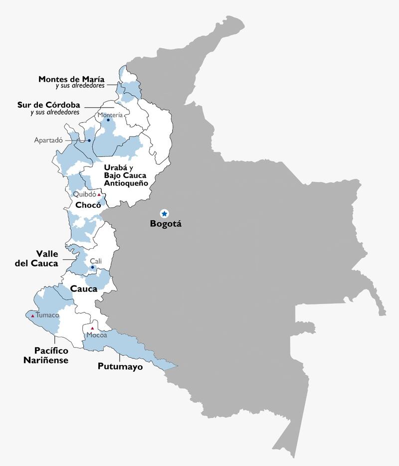 Justicia Inclusiva tendrá una duración de 5 años con presencia en 76 municipios divididos en tres ejes regionales: Chocó, Urabá y Bajo Cauca Antioqueño (Norte); Cauca, Putumayo y Nariño (Sur), y Sur de Córdoba, Montes de María y Sucre en la Sabana Costera (Costa).