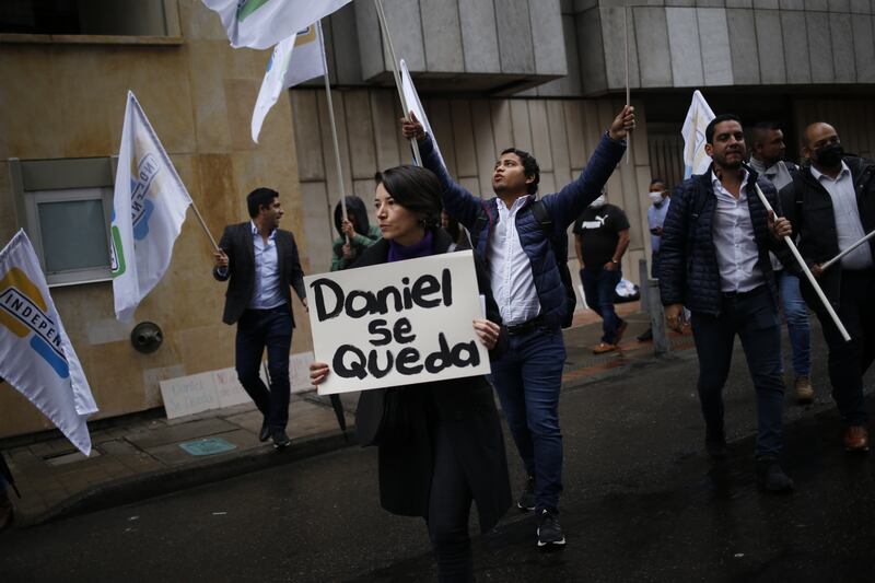 Quintero llegó junto a su esposa, Diana Osorio, para ser notificado de la suspensión de su cargo como alcalde. Lo acompañaron también batucadas, políticos como Mafe Carrascal, María José Pizarro, Hollman Morris y Alex Flórez, además de simpatizantes que llevaban pancartas con mensajes escritos como “Daniel se queda”, “Colombia te apoya” y “No al golpe de estado en Medellín”.