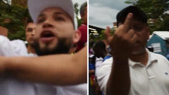 La periodista lo interpela diciendo: “¿Cuál amenazando? ¿Qué le pasa?” y el sujeto le dice: “¡Chao mi amor! (no se entiende) Petro, es de Petro, ¡Fuera, fuera!”.