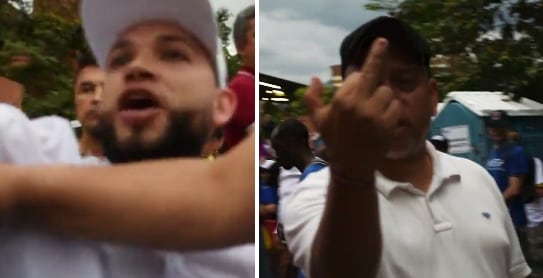 La periodista lo interpela diciendo: “¿Cuál amenazando? ¿Qué le pasa?” y el sujeto le dice: “¡Chao mi amor! (no se entiende) Petro, es de Petro, ¡Fuera, fuera!”.