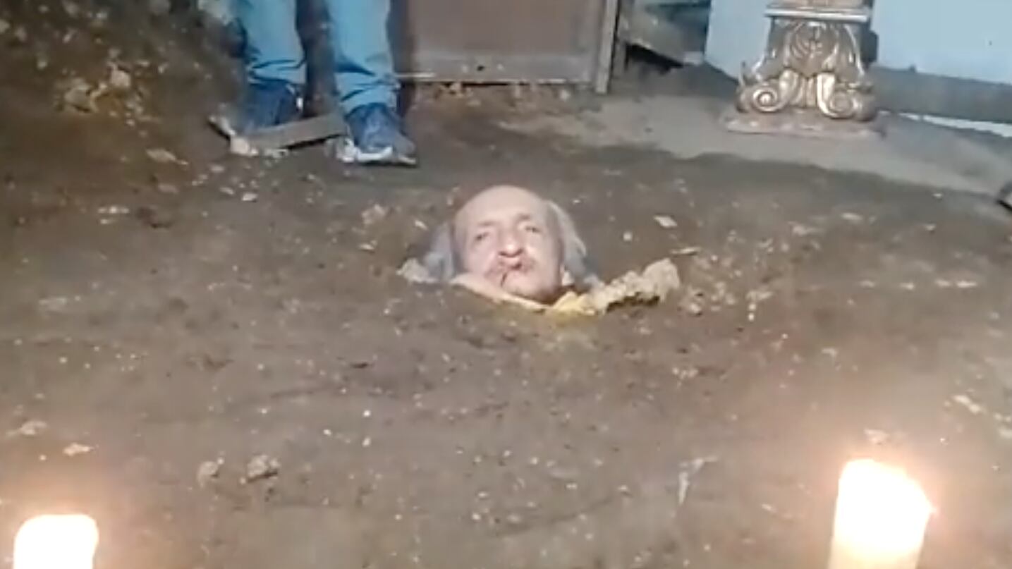 Este hombre decidió coser su boca y enterrarse vivo en la tierra para pedirle al distrito las ayudas necesarias; y que plasmó en un cartel escribiendo los motivos por los que había tomado esta decisión. “No tengo ningún auxilio solidario. No tengo vivienda propia y digna. Mis hijos no me pueden ayudar porque no tienen empleo”.