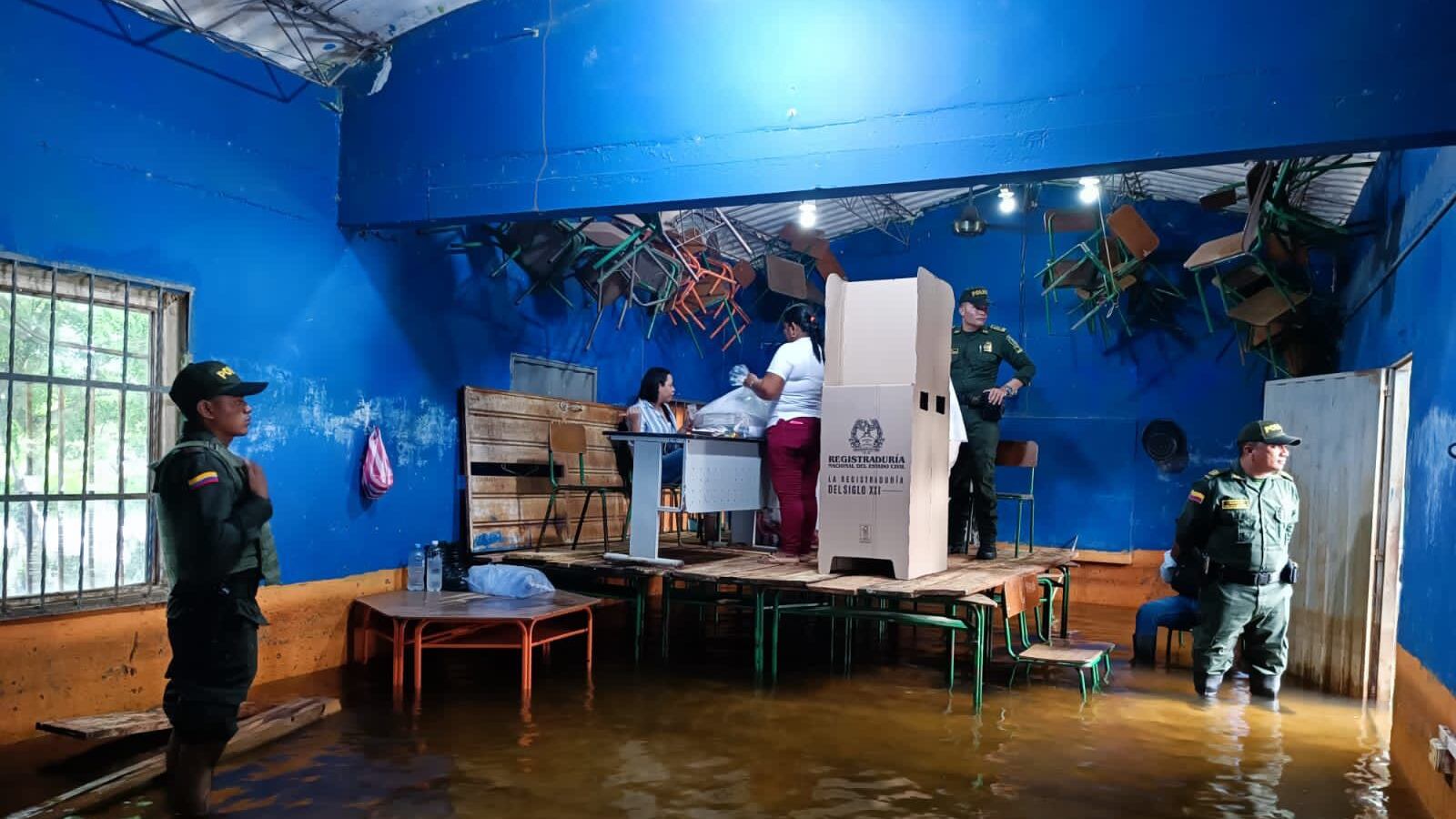 Sin embargo un video difundido en redes sociales, muestra como los habitantes de el corregimiento, Calzón Blanco en el municipio de Sucre, acuden a las urnas en condiciones precarias y en medio del agua que les llega a las rodillas.