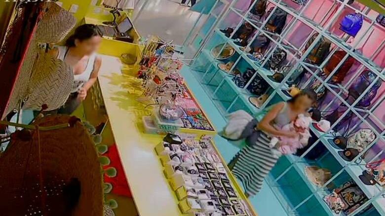 A través de las redes sociales se hizo público el material de las cámaras de seguridad de uno de los locales del complejo, en el que puede observarse a la niña antes de ser sacada del lugar, al parecer, cargada por una mujer que vestía una camiseta gris y una falda de rayas negras.